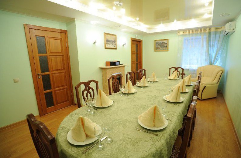 У нас есть возможность подключиться к Wi-Fi, представлены бизнес-ланч и шведский стол, работает доставка готовых блюд, доступны парковка, детская комната и банкетный зал - всё к вашим услугам.